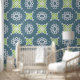 Moroccan Geometric Deep Blue Lime Green White Wallpaper