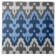Moroccan Ikat Damask, Blue and Grey / Grey Ceramic Tile