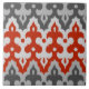 Moroccan Ikat Damask, Graphite Grey and Red Tile