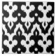 Moroccan inspired damask pattern of interlocking positive / negative fleur-de-lis shapes with a striated, Ikat woven texture - classic black and white ceramic tile