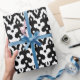 Moroccan Ikat Damask Pattern, Black and White Wrapping Paper
