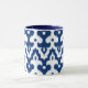 Moroccan inspired damask pattern of interlocking positive / negative fleur-de-lis shapes with a striated, Ikat woven texture - deep cobalt blue and white mug