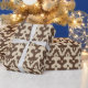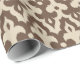 Moroccan inspired damask pattern of interlocking positive / negative fleur-de-lis shapes with a striated, Ikat woven texture - deep taupe tan and light beige wrapping paper