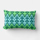 Moroccan Ikat Damask, Turquoise & Jade Green Lumbar Cushion