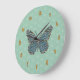 The wings, body, and antennae of a monarch butterfly are adorned with patterns found in mosaics and carvings found in the buildings and decorative items from Morocco. Blue, green, gold, white, and a rich red brown paint these geometric and floral inspired patterns, bringing in colours that are prominent and important in Moroccan artwork.