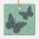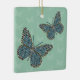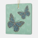 The wings, body, and antennae of a monarch butterfly are adorned with patterns found in mosaics and carvings found in the buildings and decorative items from Morocco. Blue, green, gold, white, and a rich red brown paint these geometric and floral inspired patterns, bringing in colours that are prominent and important in Moroccan artwork.