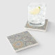 The coasters are gorgeous, a quality feel and heavy weight. They look like a precious archeological find. A rustic stone juxtaposed with a modern floral black and white print. I like the way the print goes slightly imperfect on the cut stone edges giving them a kind-of natural beauty.