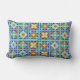 Moroccan tile blocks in blue teal gold terracotta lumbar cushion