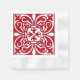 Moroccan inspired tile pattern with a polished, ceramic look - dark Chinese red with a white background