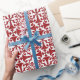 Moroccan inspired tile pattern with a polished, ceramic look - dark lipstick red with a white background