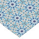 A symmetrical Moroccan pattern consisting of a mosaic of blue shades.