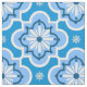 Mixed media digital rendition of a classic Moroccan tile pattern fabric - Light sky blue, cobalt blue, and white on a cerulean blue background
