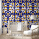Moroccan Tile Pattern Blue Yellow Shaped Bohemian Wallpaper