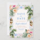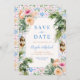 Set the tone for your big day with this Moroccan tiles wedding save the date featuring palm trees and tropical florals. A vibrant design blending bohemian charm and exotic style, perfect for destination weddings, summer celebrations, beach weddings, or tropical garden events. With its bold botanical accents, this colourful save the date card captures the essence of a lively celebration and makes a lasting impression on your guests.