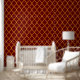This wallpaper design features an intricate and elegant Moroccan trellis pattern. The design showcases a rich maroon background with golden yellow interlocking shapes, creating a striking contrast that exudes luxury and sophistication. The repeating geometric pattern brings a sense of harmony and order to the space, making it an excellent choice for adding depth and interest to any room. This wallpaper is perfect for creating a feature wall in living rooms, bedrooms, or dining areas, adding a touch of exotic flair and timeless elegance.