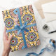 A design inspired by authentic Moroccan zellige art, combining precise geometric symmetry with a harmonious balance of warm and cool colors in a vibrant composition.
