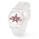 I only have one complaint. I ordered the watch with clear case and strap, and what was sent was white case and strap. I'm going to keep it because 1) it looks very nice in white, and 2) it would take too long to get a replacement made and sent in time for my occasion. Aside from the mix up with the color, the watch does look very good in white. The purple dial is actually sparkly which did not show in the online images. That was a nice surprise. If you like Swatch watches this is very similar to those. It's 33.6mm in diameter, 10.5mm thick, and 40.6mm lug to lug. Stainless steel case back says 3ATM/30m WR, so no swimming or showering or submerging this one. If you like Woodstock, this is a great choice.