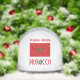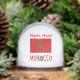 Personalised snow globe features the Moroccan Flag with the word MOROCCO below in the flag colours. Add a name, in red letters, above the flag for a cool stocking stuffer or holiday gift.