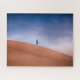Challenging puzzle featuring a photograph of a lone blue man on a dune in the Sahara Desert in Morocco.