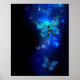blue, glowing butterflies morpho on a dark background. Morpho. Design with butterflies.