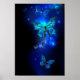blue, glowing butterflies morpho on a dark background. Morpho. Design with butterflies.
