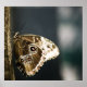 A photograph of a Common Morpho butterfly at rest on a tree.