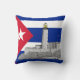An illustration of Morro Castle in Havana. A lighthouse stands and the entrance of Havana harbour. This the background in the flag of Cuba.