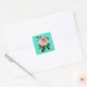 morrocan tile turquoise rose square sticker