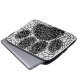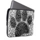 Mosaic pattern dog paw prints in black and white. Custom laptop sleeves.