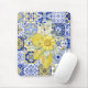 Mosaic Blooms in Blue and Yellow Mouse Pad