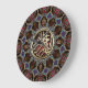 Custom Art Wall Clock : Unique design eastern mosaic mandala design inspired, in colors of purple, earth browns, red pink, turquoise, centered with the phrase 'Bismillah" in gold look, Arabic calligraphy in the center, for daily Muslim blessings at home or office