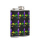 Mosaic fleur-de-lis in Mardi Gras colours: purple, green, and gold.
