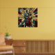 A sophisticated mosaic-style poster of a jazz bassist in a tuxedo, designed with a stunning stained glass effect. Featuring a rich palette of deep red, teal, and sunburst gold, this artistic musical character print is an ideal centerpiece for a home theater, music lounge, or creative office.