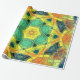 Mosaic Mandala Flower Green Yellow Blue and Orange Wrapping Paper