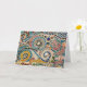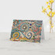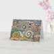 This card features a detail of a larger mosaic. The colors are primarily pink, yellow, white, and blue. Blank inside.