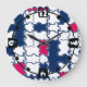 Mosaic puzzles blue navy pink white patches abstra large clock