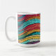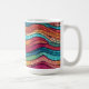 This abstract design merges the fluidity of ocean waves with the intricate beauty of mosaic art. It showcases a mesmerising array of colourful, tessellated waves that ebb and flow. Each wave is composed of small, geometric shapes, creating a unique texture that invites closer inspection. The vibrant colour palette spans from cool aquas and deep blues to warm reds, oranges, and yellows, with splashes of pink and purple adding depth and contrast.