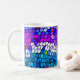 This stunning mug presents a gorgeous mosaic tile pattern in shades of purple, pink, blue, turquoise and white.