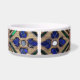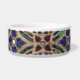 Photograph of a Moroccan mosaic tile stained glass dog or cat pet bowl.