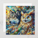 Ai art depicted a wolf and owl in a tile mosaic style. Blue eyes wolf and serious owl blank notecard. Great for anyone who loves wildlife.