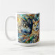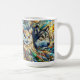 Ai art depicted a wolf and owl in a tile mosaic style. Blue eyes wolf and serious owl coffee mug. Great for anyone who loves wildlife.