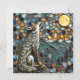 Ai art depicted a wolf howling at the moon. Cool tile mosaic style. Black note card.