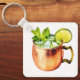 A refreshing Moscow Mule cocktail served in a copper mug with ice, lime, and mint leaves, perfect for a cool summer drink.