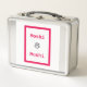 This is a standard metal lunchbox that appears to work just fine. We designed this box ourselves with an uploaded photo and custom text on the front and back. It looks absolutely beautiful except the front of the lunchbox is not centered like it shows in the photo. The print borders don't align with the inset flat part of the box where the preview photo online showed it perfectly centered in there. The back looks nice and centered though.