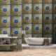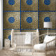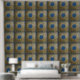 Mosiac Square Pattern Blue Gold Peel Stick Wallpaper