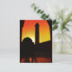 Postcard: Mosque in sunset artwork with typical islamic architecture with round copula roof, tall minaret and view from under arches of the inner courtyard. Flock of birds passing minaret tower in beautifully coloured sunset. Photo from Syria, Damascus mosque, that have been destroyed in the 2014 during the conflict. Architecture/Travel series - Syria. Original Photography/Art/Design by work4dream.