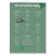A simple yet lovely chart with all kinds of aromatherapy hints listed. It tells you what aromas and essential oils to use for insomnia, insects stings and bites, depression, and six others. Includes basil, lemon, bergamot, tea tree, cinnamon, and many more. We offer this as a flyer, postcard and greeting card, so you can send it to your clients, and as a full sized poster. You choose if you want to frame it or not. Also available with lavender sandstone or bright blue background.