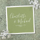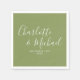 Elegant moss green signature wedding napkins featuring signature style names, these modern napkins can be personalised with your information in chic lettering. Designed by Thisisnotme©