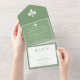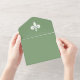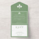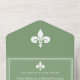 Elegant and simple Wedding all in one invitations featuring a fleur de lis against a moss green background. This design is a unique choice for a modern wedding. Easy to customise with your wedding details. Click "Customise It" to find more personalisation options.