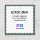 Features two lines of custom bold text, ideal for highlighting your name or tagline in an eye-catching way. On the reverse, the same scalloped frame design, now in white with a Moss Green creating a harmonious contrast. You have space for your full contact details and two social media icons (Facebook and Instagram) alongside space for your handles or account names. Social media icons can be removed or changed